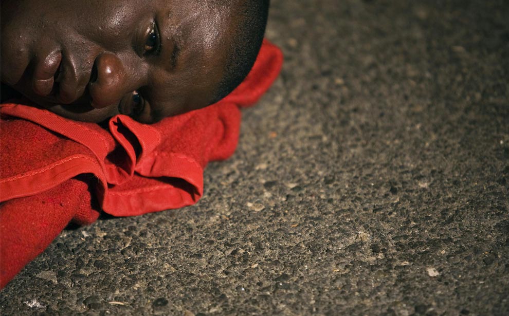 A would-be immigrant lies on the ground as he waits to be identified upon arriving at Arguineguin port in the Canary Islands of Gran Canaria early December 7, 2008. (REUTERS/Borja Suarez)