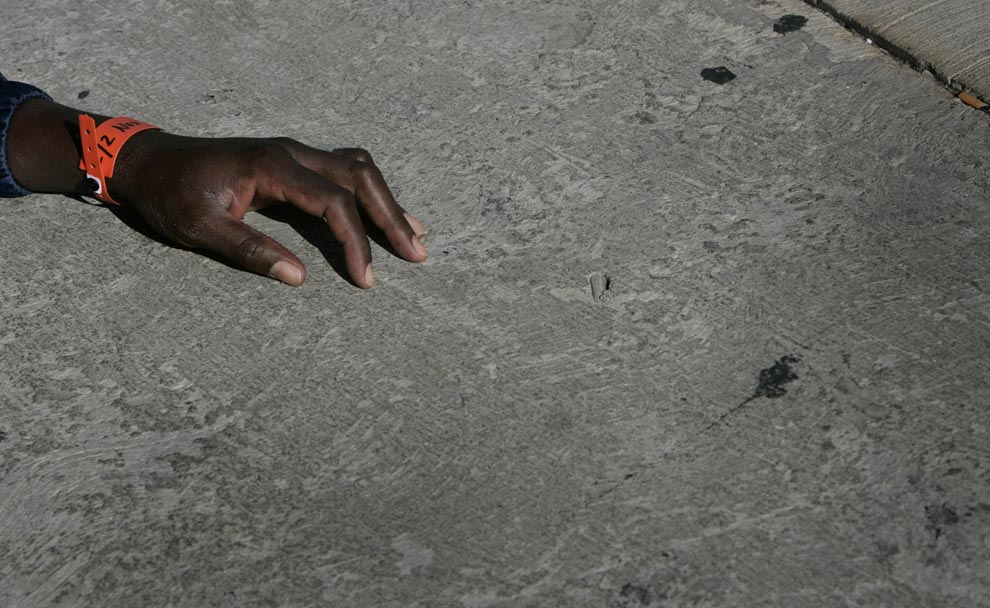 The tagged wrist of a would be immigrant is pictured on the ground in Los Cristianos on the Spanish Canary island of Tenerife on November 6, 2008. (DESIREE MARTIN/AFP/Getty Images)
