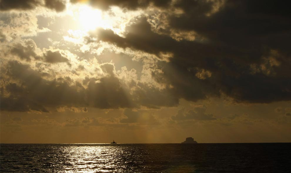 An Armed Forces of Malta (AFM) Maritime Squadron Protector-class vessel patrols waters near the island of Filfla, the southern-most island in the Maltese archipelago, September 28, 2008. 101 African would-be immigrants were rescued by the Italian naval frigate ITS Vega at the edge of Malta's search and rescue region with Libya and subsequently transferred to AFM vessels when they found themselves in difficulty in rough seas, authorities said. (REUTERS/Darrin Zammit Lupi)